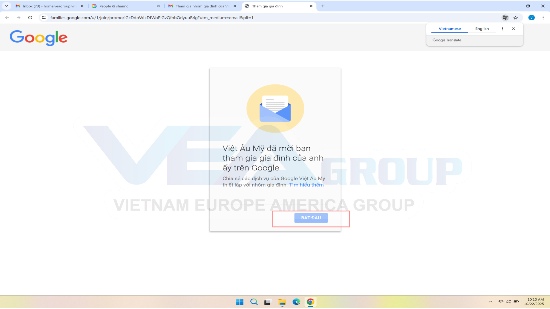 +) Tình huống 2: Email của bạn là email quản lý nhóm gia đình