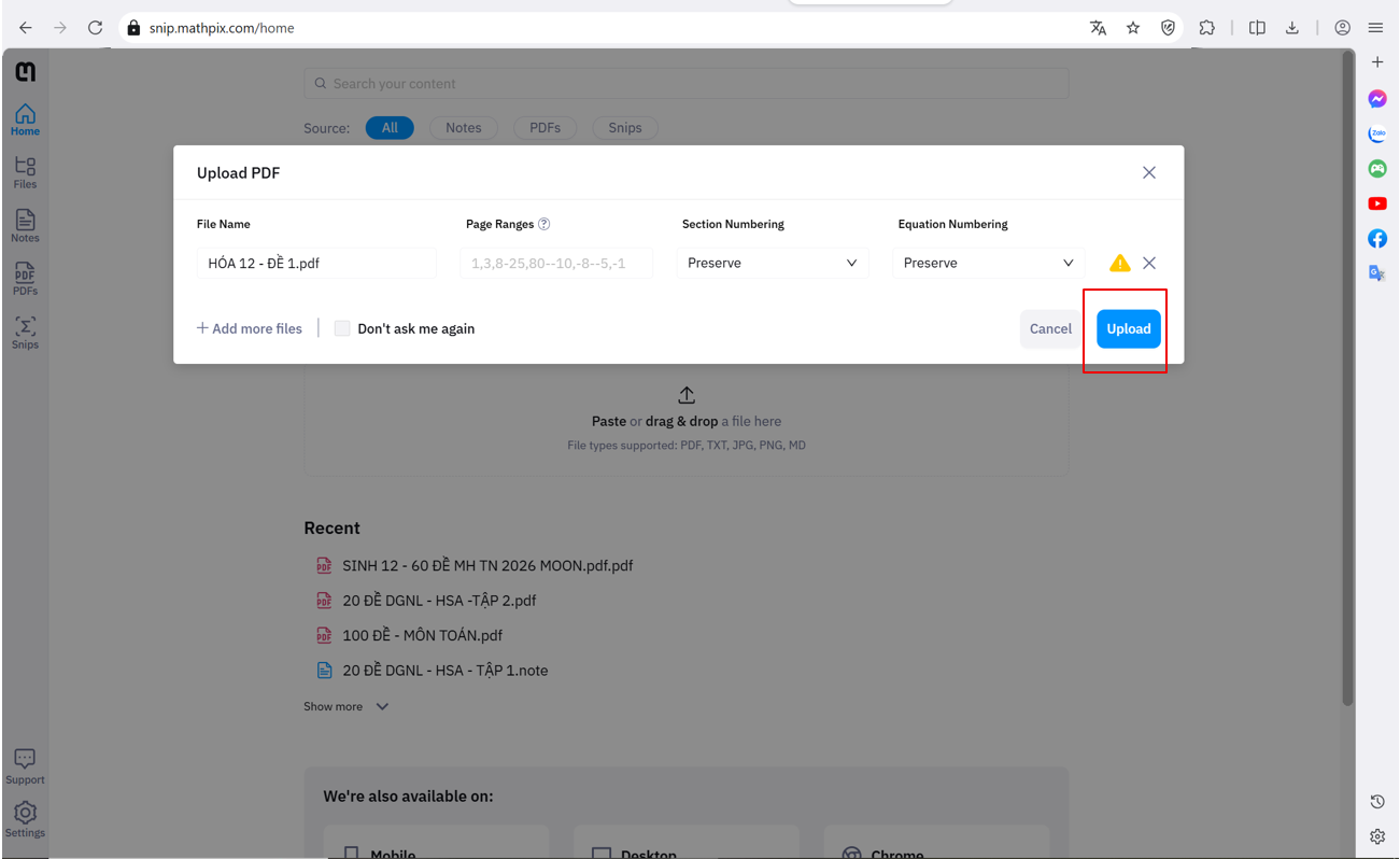Bước 1: Truy cập vào trang web https://snip.mathpix.com/