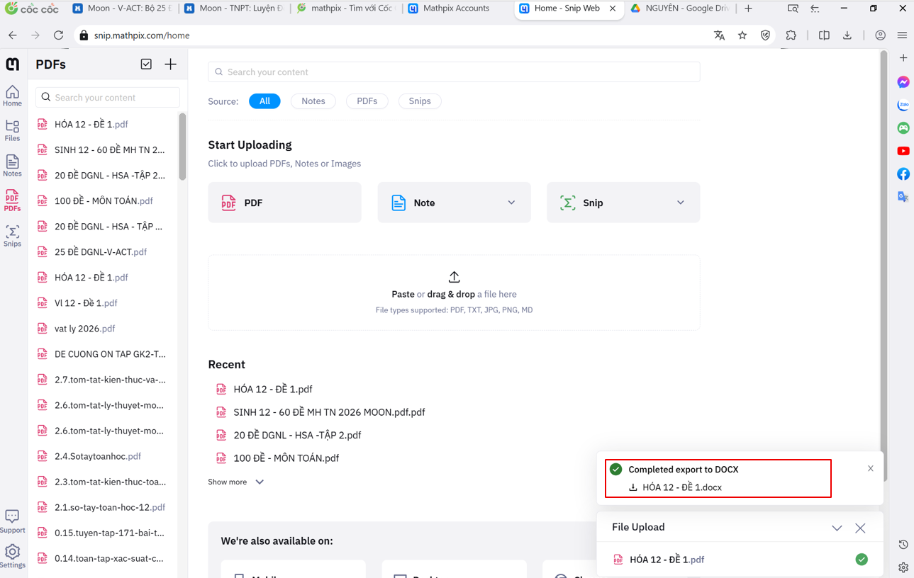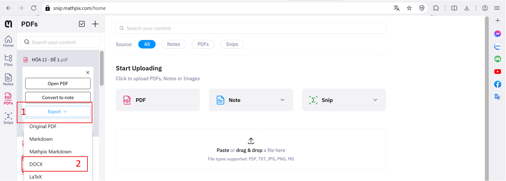 Bước 4: Sau khi file load xong chọn Export và chọn docx