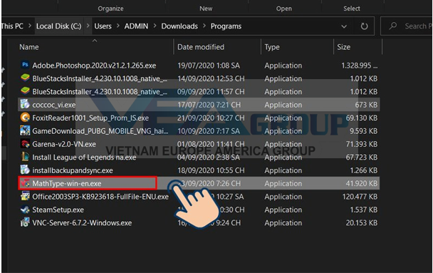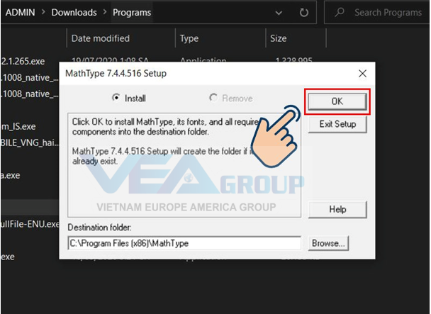 Vào thư mục cài đặt Mathtype
