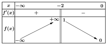 Câu 6: [VEAgroup] Cho hàm số $f\left( x \right)$ xác định trên $\left( -\infty ;0 \right)\backslash \left\{ -2 \right\}$ và có bảng biến thiên bên dưới. Đồ thị hàm số đã cho có tổng số đường tiệm cận ngang và tiệm cận đứng là
