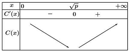 Từ bảng biến thiên, ta thấy hàm số $C\left( x \right)$ đạt giá trị nhỏ nhất tại $x=\sqrt{p}$