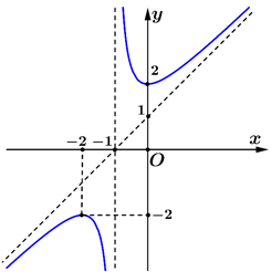 Từ đồ thị hàm số không có tiệm cận ngang và có một tiệm cận đứng là đường thẳng $x=-2$.
